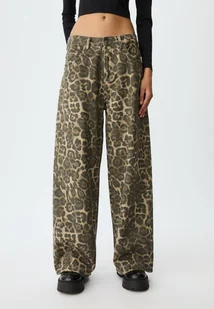 Stradivarius Spodnie baggy w panterkę Szary 32