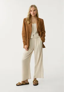Luźne spodnie culotte z wysokim stanem, wykonane z mieszanki wiskozy i lnu. Gumka w pasie z tyłu, boczne kieszenie, zakładki z przodu i metalowy haczyk, zapięcie na guzik i suwak od wewnętrznej strony. Dostępne w różnych kolorach.