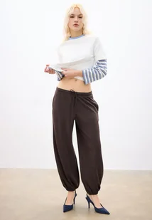 Stradivarius Spodnie jogger balloon, miękkie w dotyku Brązowy S