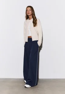 Stradivarius Spodnie jogger z dzianiny dresowej z szerokimi nogawkami Morski XL