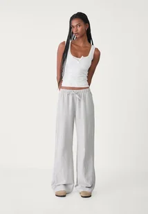 Stradivarius Zwiewne spodnie w paski z lnu Szary L