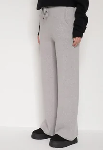 Szare Dzianinowe Spodnie o Szerokim Kroju ze Sznurkami Melatusa
