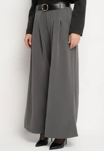 Szare Garniturowe Spodnie z Wiskozą o Szerokim Kroju z Paskiem Ravilis