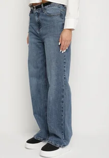 Szare Jeansy o Szerokim Kroju z Wysokim Stanem Zdobione Cyrkoniami Zarilia