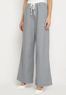 Szare Spodnie z Szerokimi Nogawkami z Gumką w Pasie i Ściągaczem Fuma