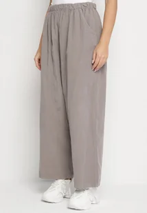 Szare Szerokie Spodnie z Bawełny z Wysokim Stanem Florili