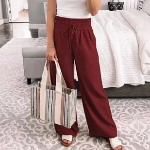 Szerokie damskie spodnie z gumką w pasie - Bordowy M