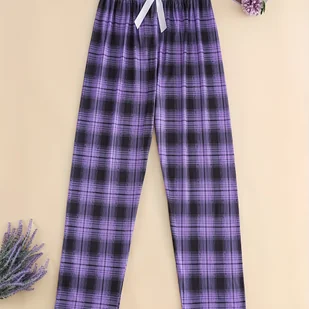 TEMU i letnie piżamowe spodnie damskie, elastyczny pas, luźne i swobodne z kokardką i dwukolorowym wzorem w kratę, można je nosić dowolnie