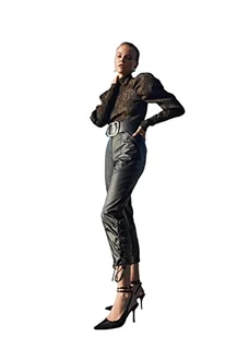 Trendyol Damskie Spodnie Black Bird Eye Detaljiled sztuczne skórzane spodnie, czarny, 40