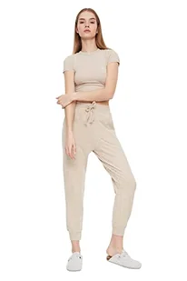 Trendyol damskie spodnie dresowe beżowe luźne jogger sześć sześć, beżowy, L