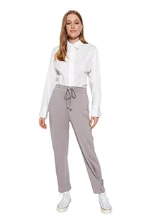Trendyol Damskie spodnie dresowe o normalnej talii, proste nogawki, regularny krój, skromne spodnie dresowe, szary, L