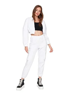 Trendyol Damskie spodnie dresowe o normalnej talii skinny fit, biały, XL