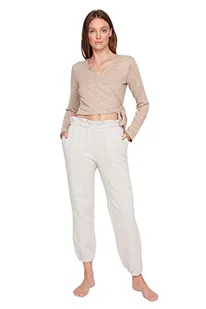 Trendyol Damskie spodnie dresowe z normalnym stanem Skinny Fit, BEŻOWY, L