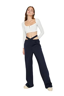 Trendyol Damskie spodnie dresowe z szerokimi nogawkami o normalnej talii, Ciemny granatowy niebieski, XS