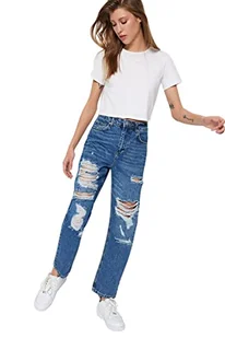 Trendyol Damskie spodnie jeansowe z wysokim stanem i nogawkami, NIEBIESKI, 62