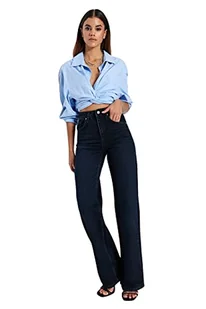 Trendyol Damskie spodnie jeansowe z wysokim stanem i szeroką nogawką, nocny granat, 62