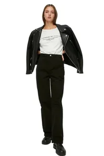 TRENDYOL Damskie spodnie jeansowe z wysokim stanem, szerokie nogawki, czarne, czarny