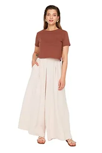 Trendyol Damskie spodnie o normalnej talii z szerokimi nogawkami plus size, BEŻOWY, 70-Du?e Rozmiary