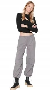 TRENDYOL SZARE CASUAL SPODNIE Z SZNUROWANIEM NA NOGAWKACH 38 J9A
