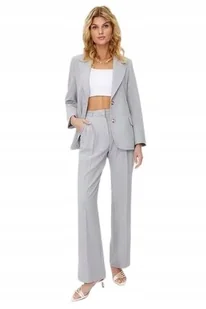 TRENDYOL SZARE ELEGANCKIE SPODNIE PROSTE Z ZASZEWKAMI 38 5AA