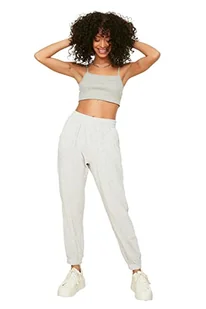 Trendyol Szary Velvet Luźny Jogger Knitted Tracksuit spodnie damskie, Szary, L