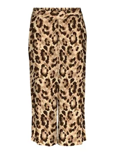 Beżowo-Brązowe Spodnie Wide Leg z Gumką w Talii w Panterkowy Wzór Filanira