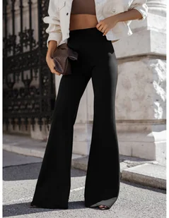 Wiskozowe spodnie dzwony REILLY - czarne Styl, wygoda i ponadczasowa elegancja w jednym — spodnie REILLY to must-have w garderobie każdej kobiety! Wykonane z elastycznej, przyjemnej w dotyku wiskozy, pięknie dopasowują się do sylwetki i podkreślają kobiece kształty. Fason z rozszerzanymi nogawkami typu dzwony optycznie wydłuża nogi i dodaje sylwetce lekkości, a elastyczna gumka w pasie gwarantuje pełen komfort noszenia. To model, który bez trudu dopasujesz do każdej okazji — noś je z crop topem i ramoneską na co dzień lub zestaw z elegancką koszulą i szpilkami na wieczorne wyjście. REILLY to klasyka, która nigdy nie wychodzi z mody – idealne spodnie dla kobiet, które lubią wyglądać zmysłowo, ale z klasą. Wiskozowe spodnie dzwony w kolorze czarnym powinny zasilić Twoją garderobę.