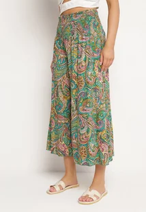 Zielone Bawełniane Spodnie Kuloty z Wzorem Paisley Tarrisa