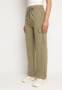 Zielone Bawełniane Spodnie z Gumką w Pasie i Kieszeniami Typu Cargo Kalanielle