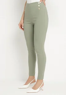 Zielone Dopasowane Spodnie z Bawełną Wysokim Stanem i Guzikami Arrioliana