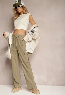 Zielone Spodnie dresowe z Bawełny z Szerokimi Kieszeniami Cargo Tanelle