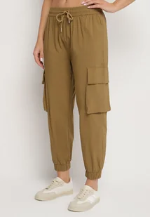 Zielone Spodnie z Bawełną Typu Cargo z Wysokim Stanem Koloriela