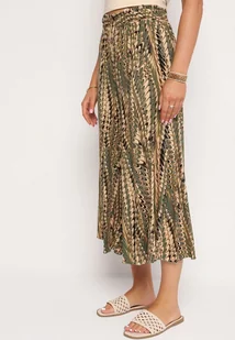 Zielone Szerokie Wiskozowe Spodnie z Wysokim Stanem i Gumką w Talii Ozdobione Guzikami Jilifea