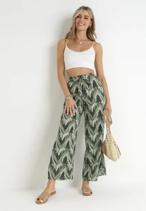 Zielone Wzorzyste Spodnie z Marszczoną Gumką w Pasie i Szerokimi Nogawkami Jaretsi