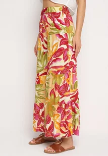 Zielono-Różowe Spodnie Wiskozowe Palazzo z Wysokim Stanem i Gumką w Pasie Nasone