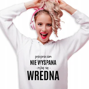 BLUZA DAMSKA Biała Kaptur Prezent Urodziny NIE WYSPANA ROBIĘ SIĘ WREDNA - S
