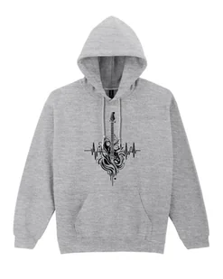 Bluza Gitara Heartbeat dla Muzyka Gitarzysty z Nadrukiem Szara L