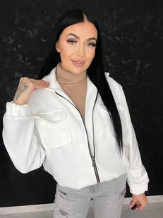 Bluza Krótka Zapinana na Zamek Z Kołnierzem Biała