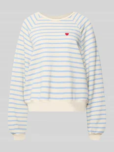 Bluza damska Pieces;Model ‘Greta’;Efekt: jednolity kolor, dwa kolory;Krój: Oversized;Wzór: w paski;Aplikacja: Wyhaftowane logo, detal z motywem;Dekolt: