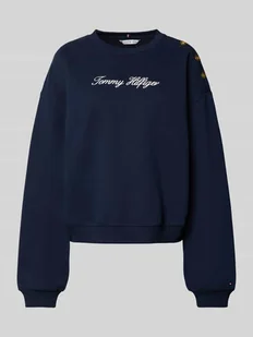 Bluza damska Tommy Hilfiger;Efekt: jednolity kolor;Krój: Krój relaxed fit;Aplikacja: Wyhaftowane logo;Kształt kołnierza: Bez dekoltu;Dekolt: