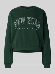 Bluza damska Only;Model ‘Sweat’;Efekt: jednolity kolor;Krój: Krój loose fit;Aplikacja: Naszywka z logo, nadruk z motywem;Detale: obniżone ramiona;Dekolt: