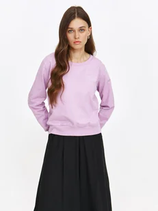Ujmująca komfortem podczas użytkowania oraz klasycznym luźnym krojem bluza damska z prostymi długimi rękawami zakończonymi szerokim ściągaczem. Posiada ona okrągły dekolt z ozdobną lamówką wokół, a uroku dodaje jej haftowana aplikacja umiejscowiona z przodu na wysokości biustu po lewej stronie. Została ona uszyta z przyjemnej w dotyku oraz dobrej gatunkowo dzianiny, będąc wzbogaconą o praktyczny ściągacz umiejscowiony u jej dołu. Świetnie wygląda ona zarówno w połączeniu z klasycznymi długimi spodniami jeansowymi, jak i również efektowną spódnicą. Bluza damska dostępna w kolorze liliowym TSKS25BZA131745X00.
