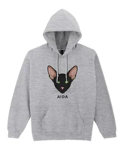 Bluza z kapturem Orientalny Czarny Personalizowana Kot Szara M