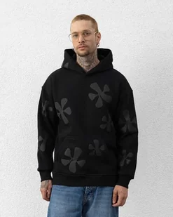 Bluza z kapturem w kwiatki - czarny L