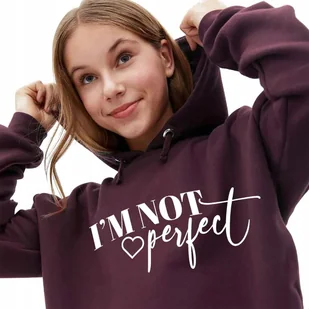 Bordowa Bluza Damska Z Kapturem IM NOT PERFECT Modna Stylowa Piękne Wz - S