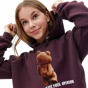 Bordowa Bluza Damska Z Kapturem THERE I HAVE YOUR OPINION Modna Wzory - S