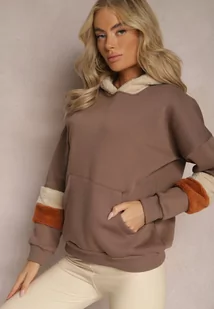 Brązowa Bawełniana Bluza z Kapturem i Wstawkami z Polaru Qilin