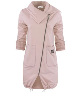 bawełniana bluza BASIC długość do kolan kolnierz skośny suwak 2 kieszenie z przodu ozdobna naszywka długi rękaw basic Długa, cienka bluza z ozdobnym kołnierz...