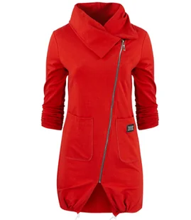 bawełniana bluza BASIC długość do kolan kolnierz skośny suwak 2 kieszenie z przodu ozdobna naszywka długi rękaw basic Długa, cienka bluza z ozdobnym kołnierz...
