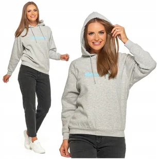 Ciepła Bluza Dresowa Damska MORAJ Z Kapturem z Napisem Gładka Klasyczna M